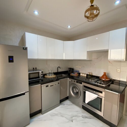 Modern and comfortable apartment in Cité Adrar, a few minutes from Adrar Stadium, close to shops and cafes, with quick access to Taghazout, Aourir, and the beaches of Agadir. Ideal for families and event travelers. Well-equipped, quiet, and convenient.
