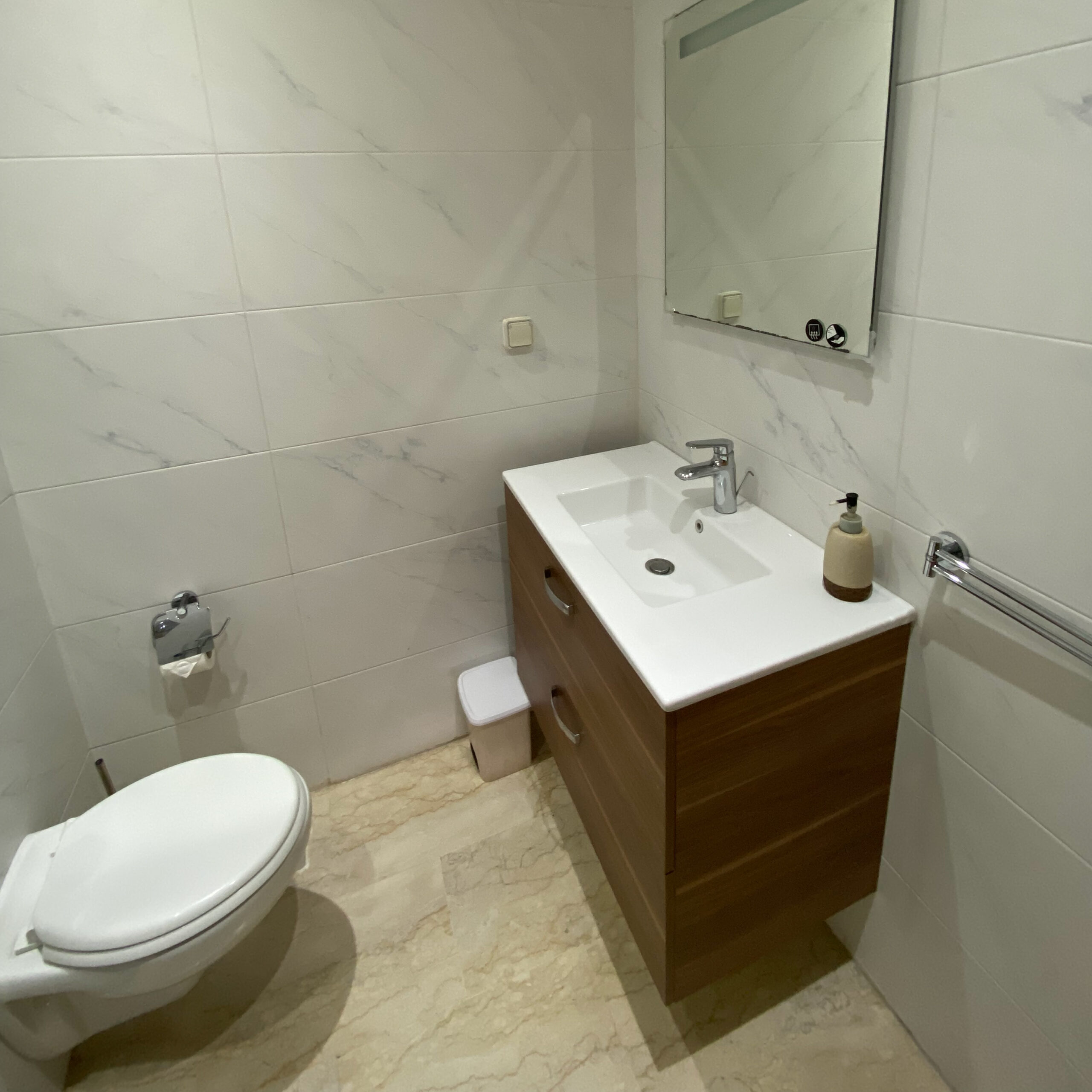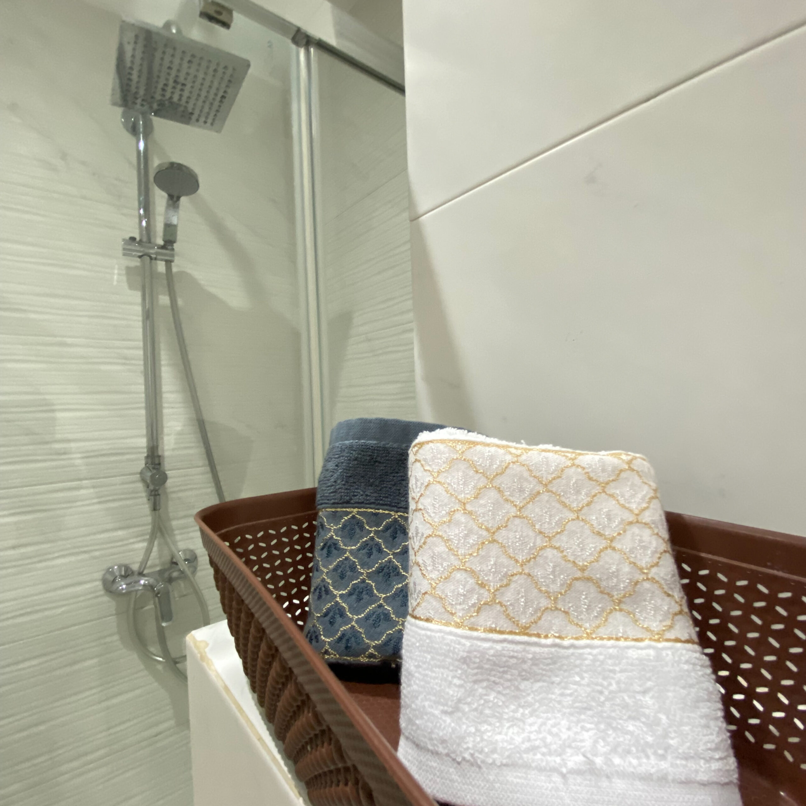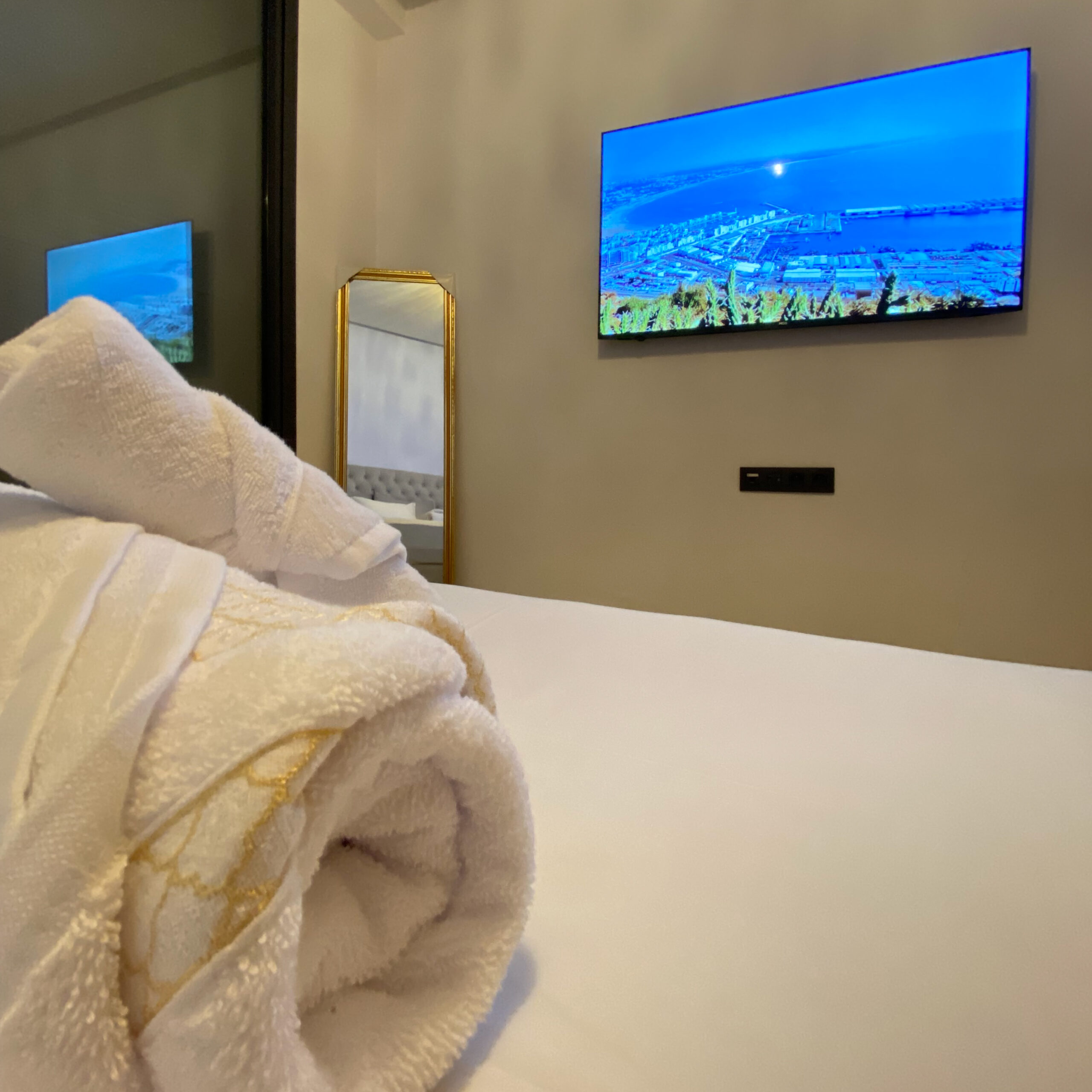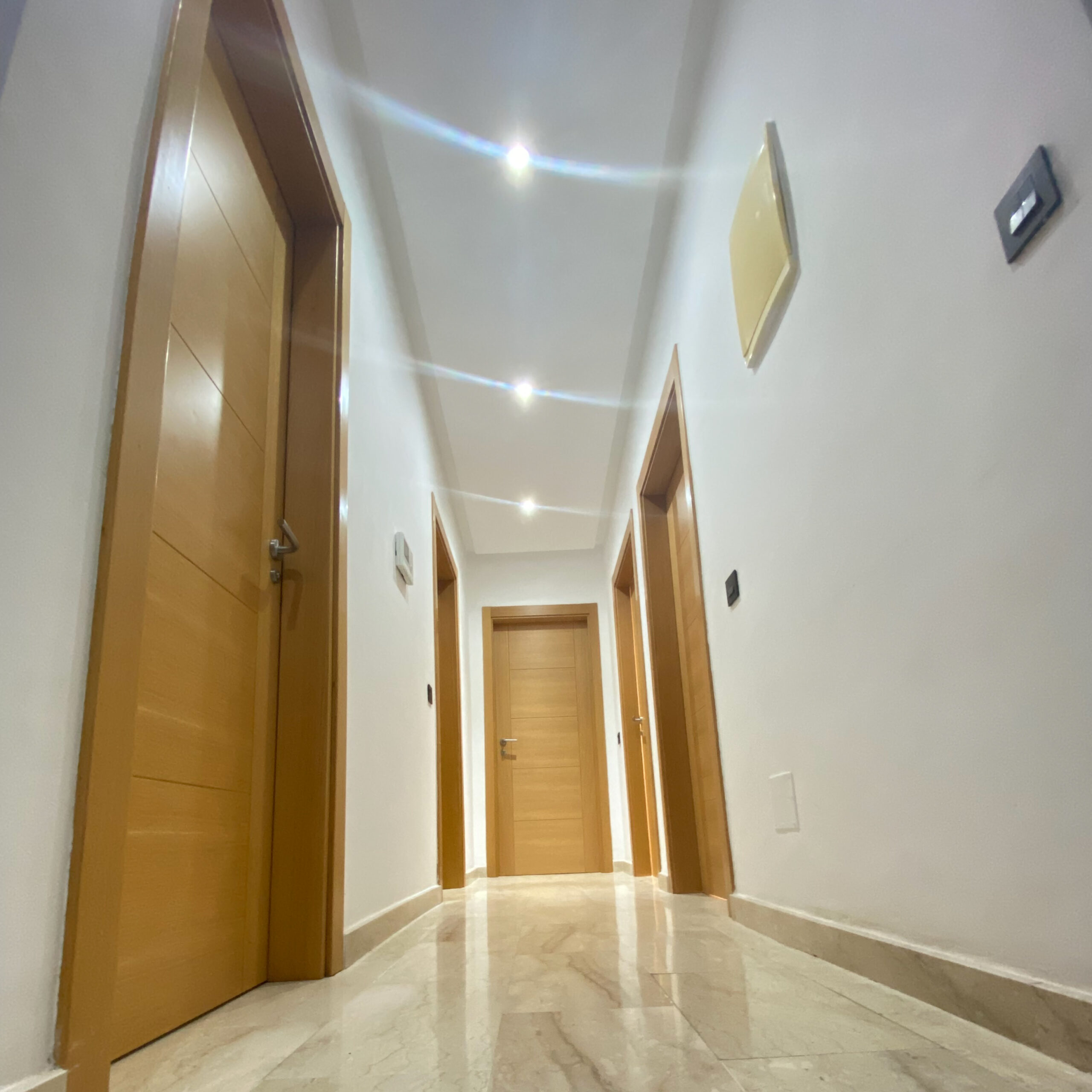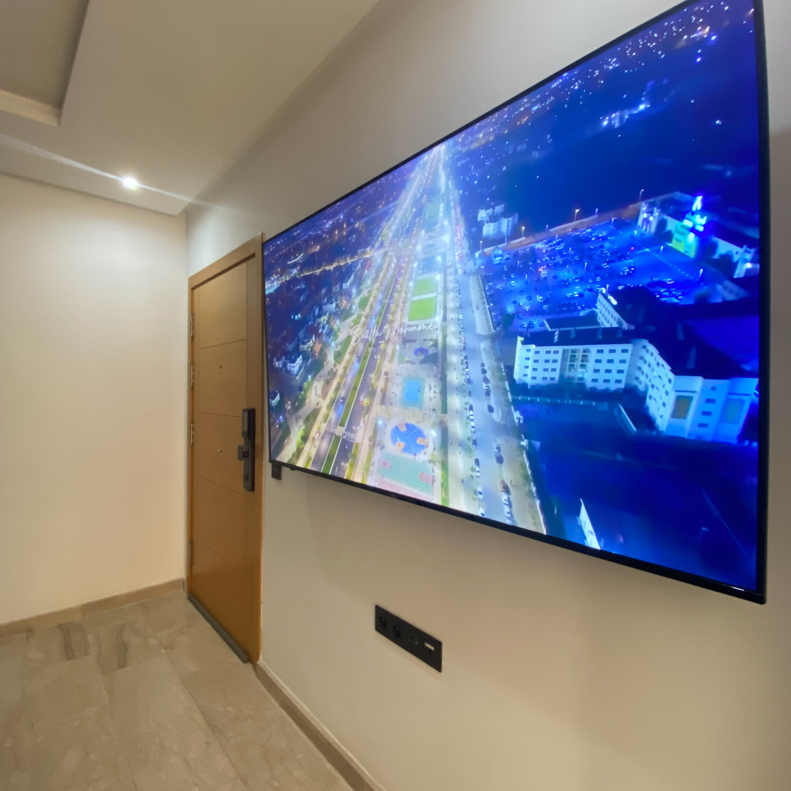 Modern 2-bedroom apartment in Agadir Bay with a bright Moroccan-style living room, a bathroom with shower, and a separate toilet. The master bedroom features a private balcony with a stylish seating area. Fully equipped, clean, and bathed in natural light. Secure residence with underground parking and a swimming pool.