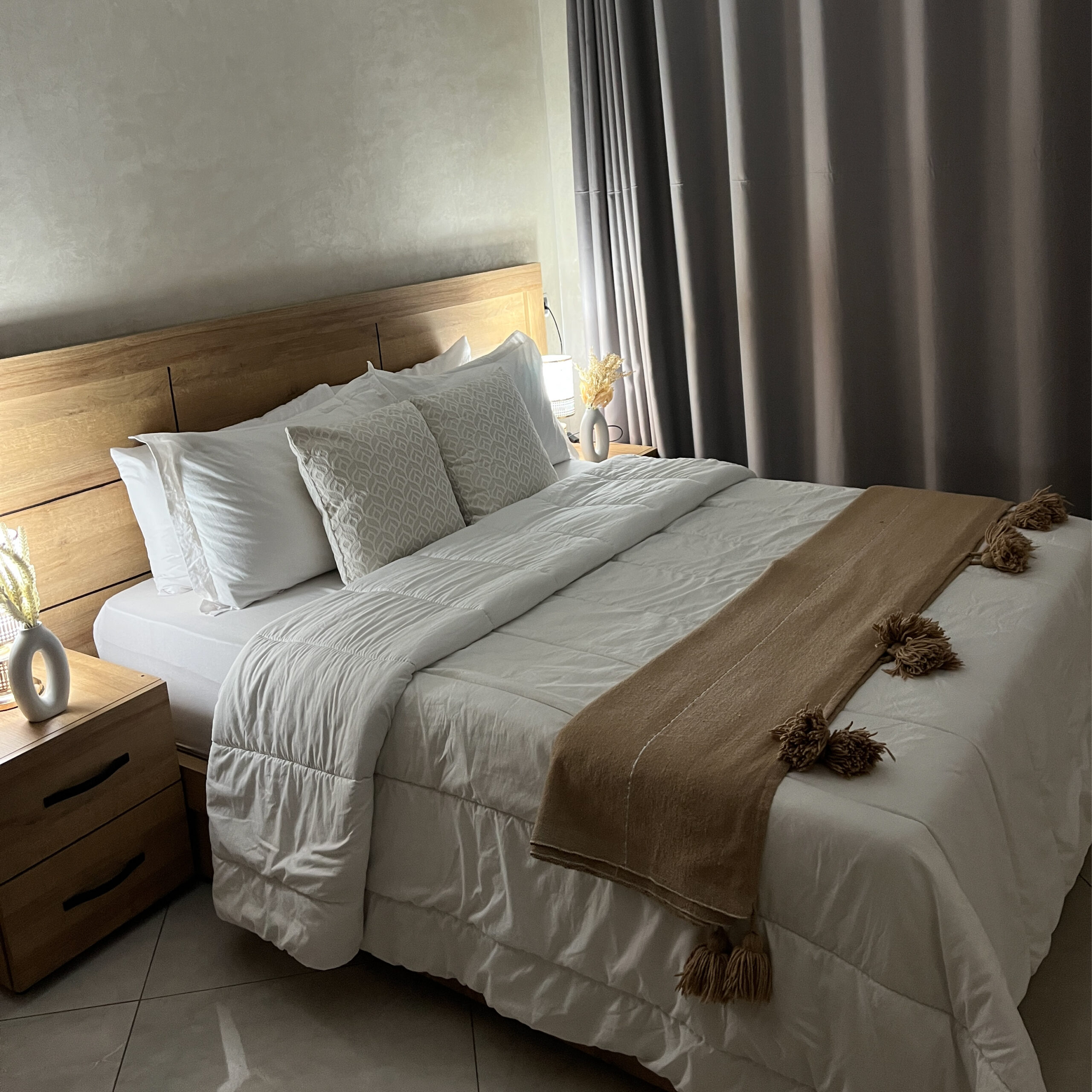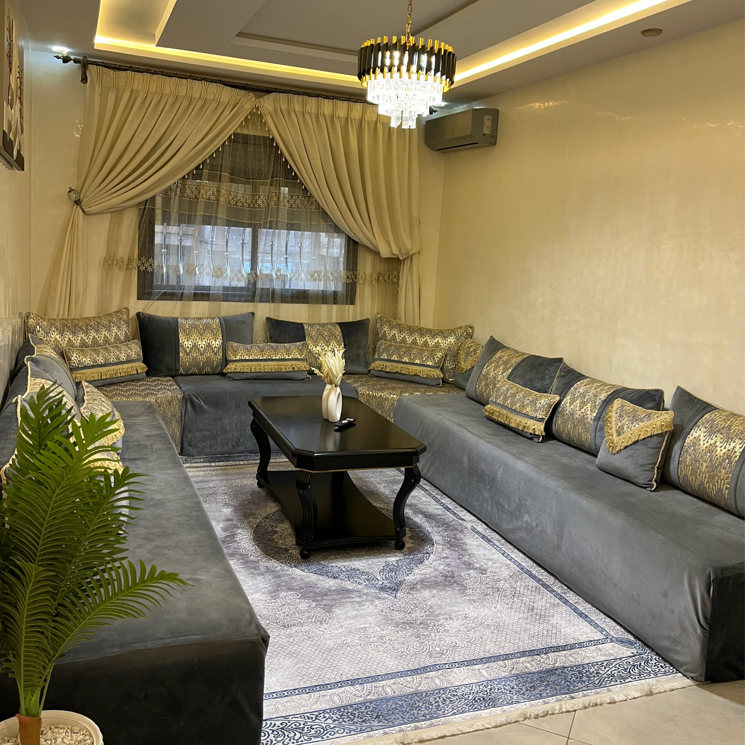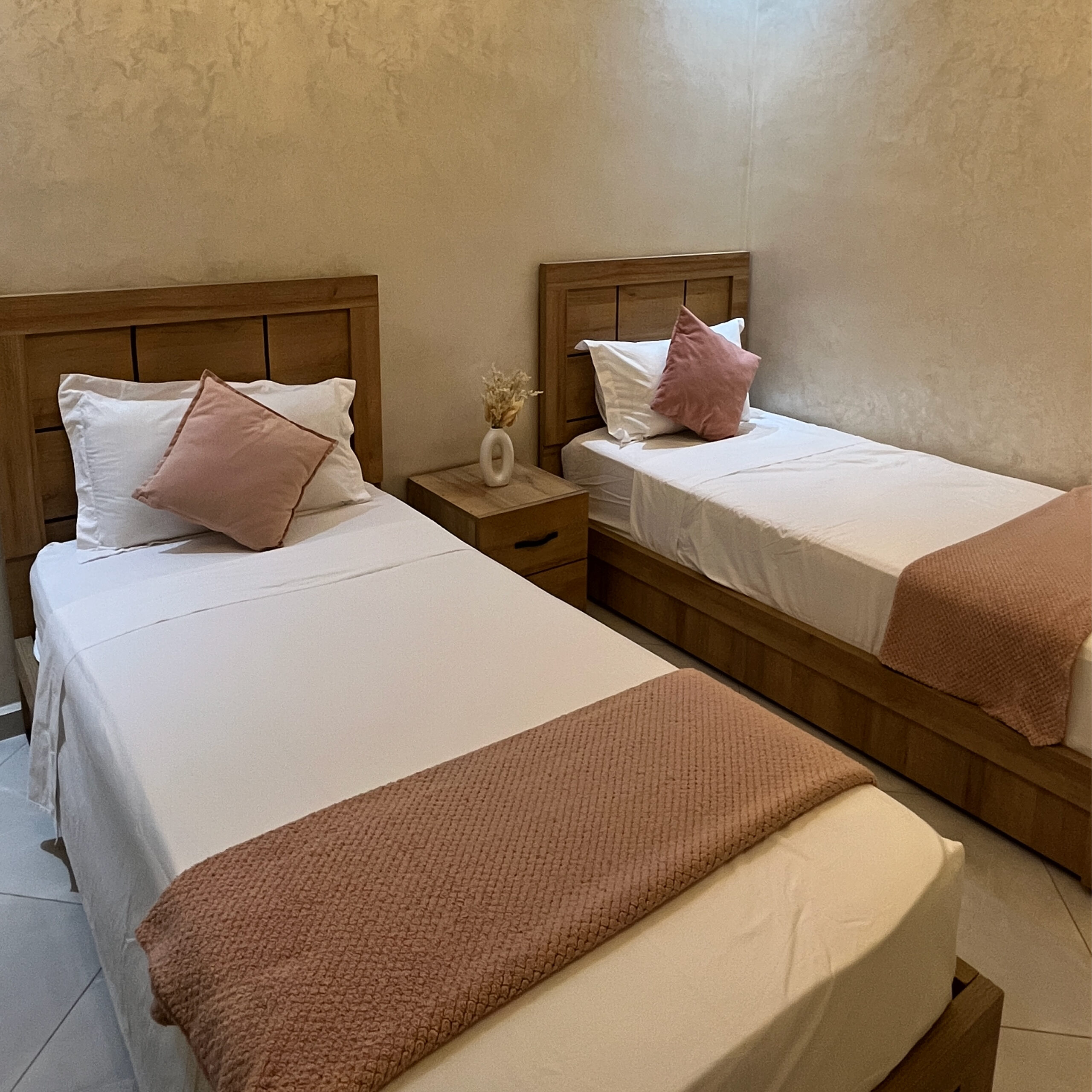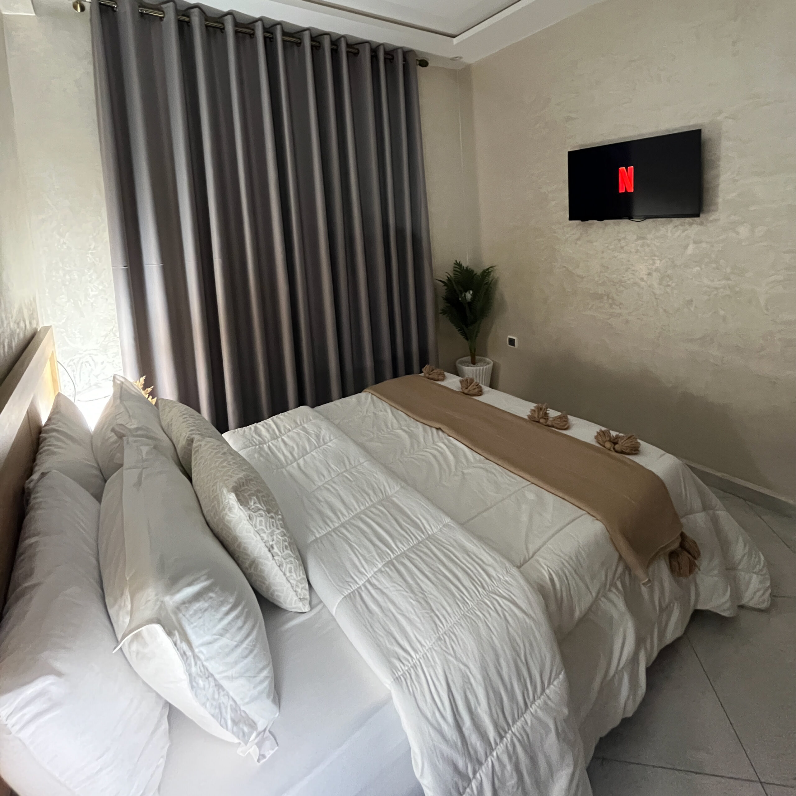Cozy, bright, and modern apartment in Cité Adrar. Living room with sofa bed, master suite with furnished balcony, bedroom with single beds, and a hotel-style bathroom. 24/7 secure building. 2 minutes from Sela Park, close to shops, taxis, beaches, and attractions. Ideal for families, couples, and business travelers.